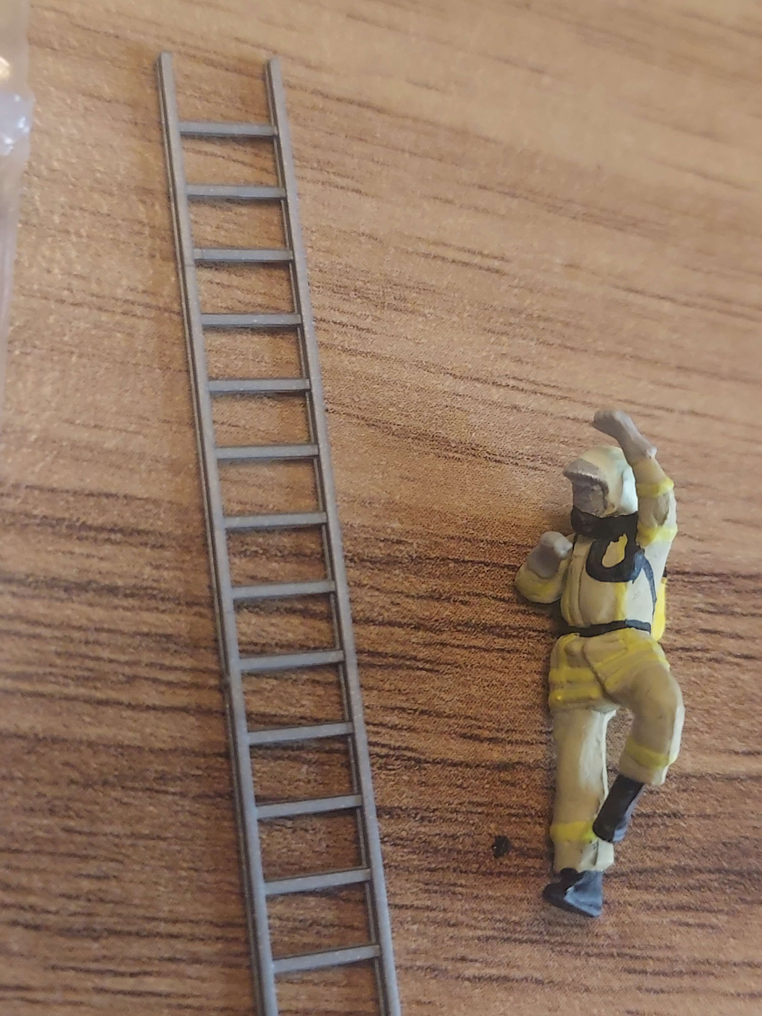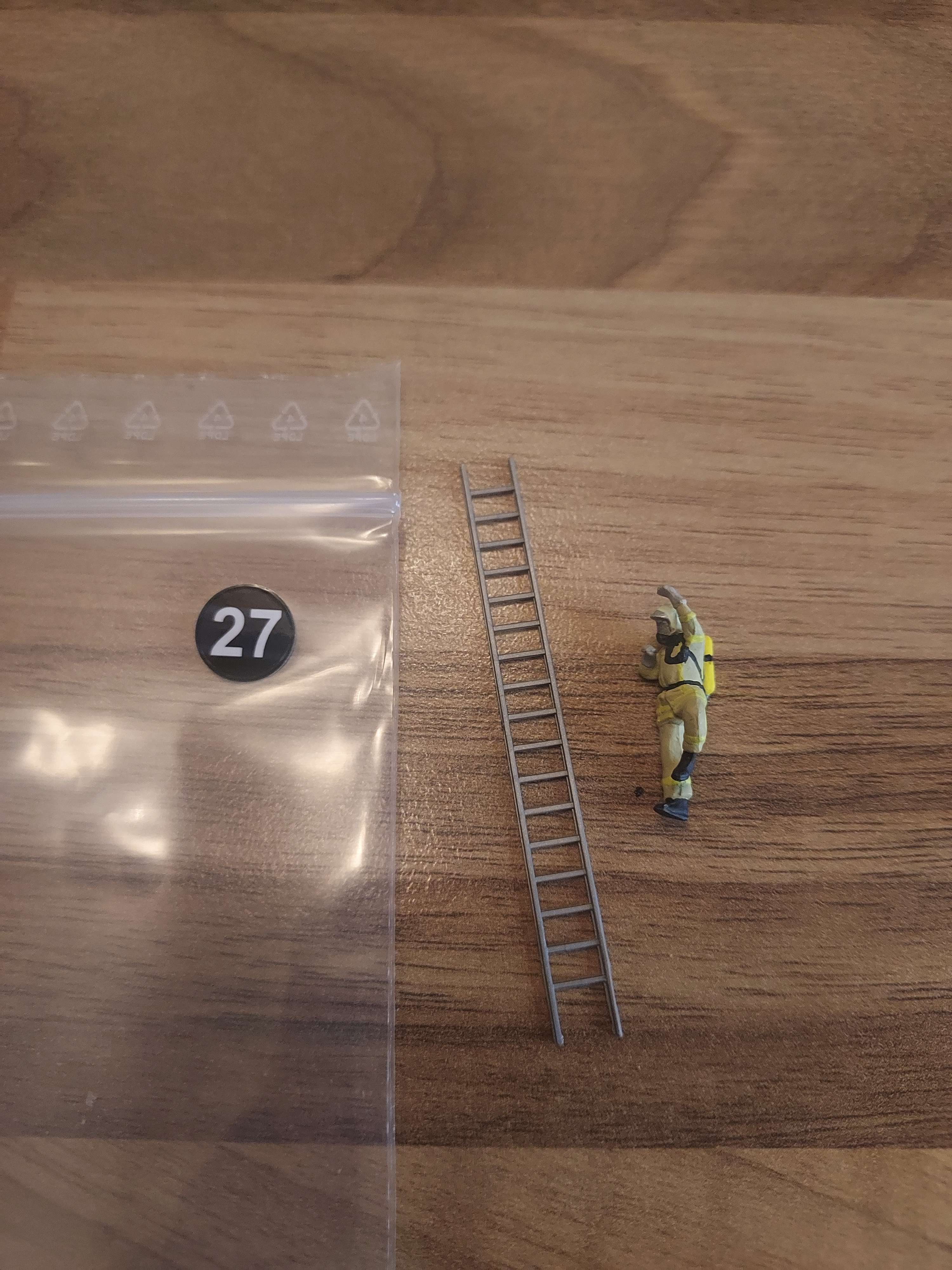 > Personnage preiser pompier en tenues d'interventions neuf avec échelle HO ref 27