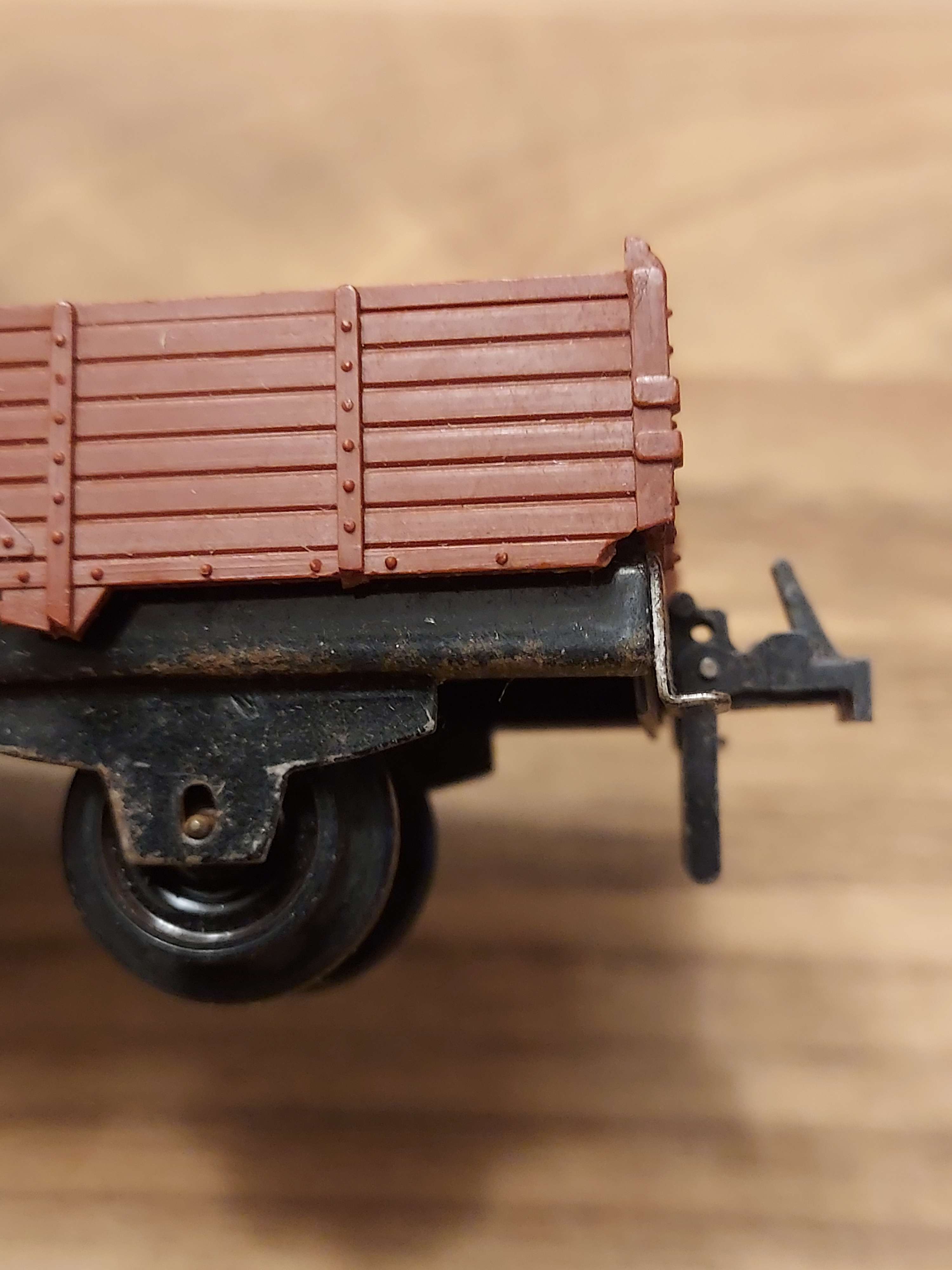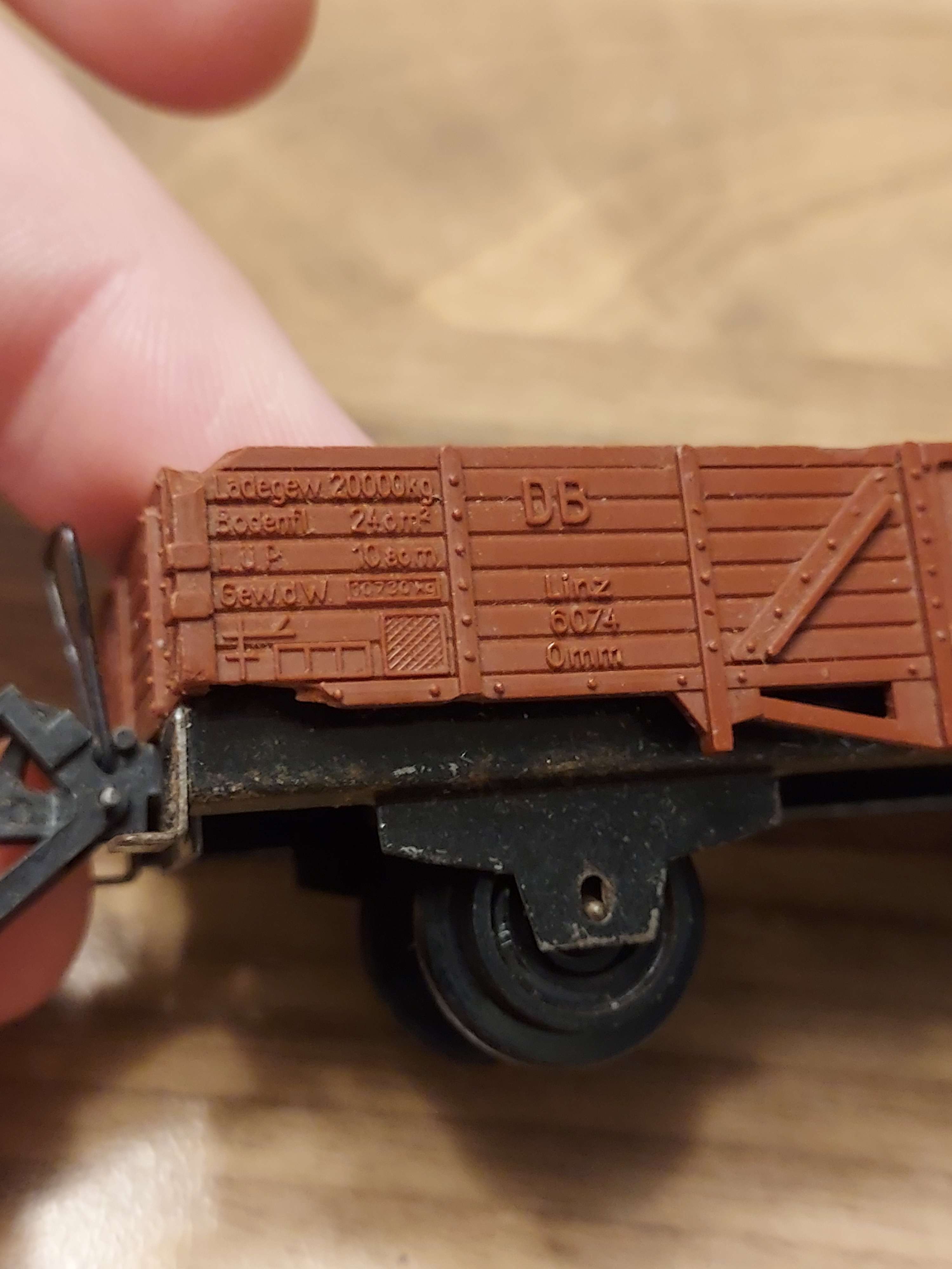 Il y a 2 wagon il manque les tampons et une boucle et le plastique et casse voir photo